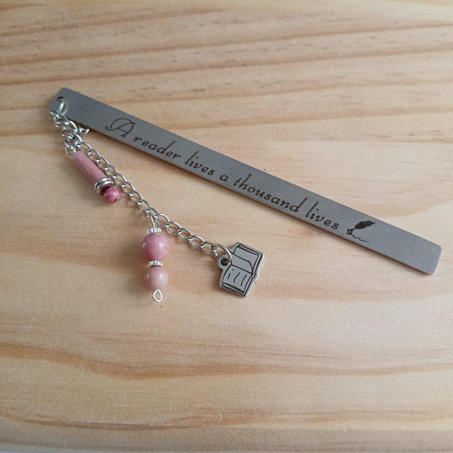 Boekenlegger met Rhodochrosiet – “A reader lives a thousand lives” (4.040)