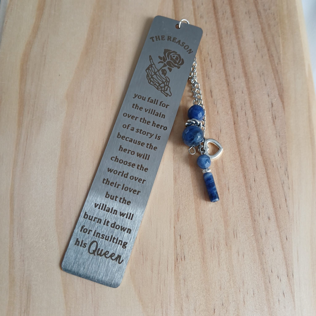 Boekenlegger met Sodaliet – met Engelse tekst en bedel (4.042)